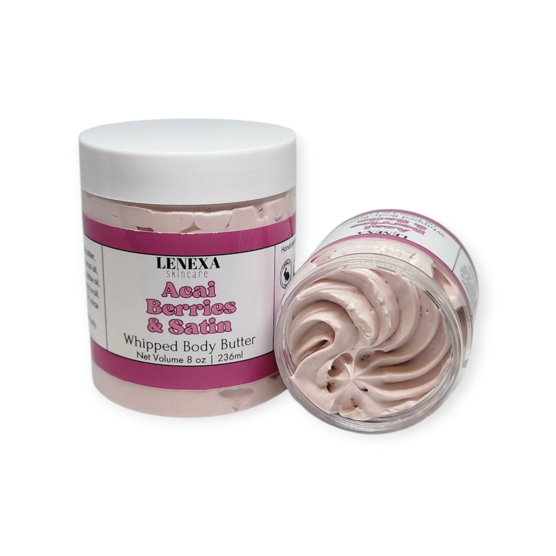 This lightweight whipped body butter is made with natural ingredients and skin-safe fragrance. It melts into your skin without feeling greasy, leaving it deeply moisturized, nourished, silky, and naturally glowing. A little goes a long way.